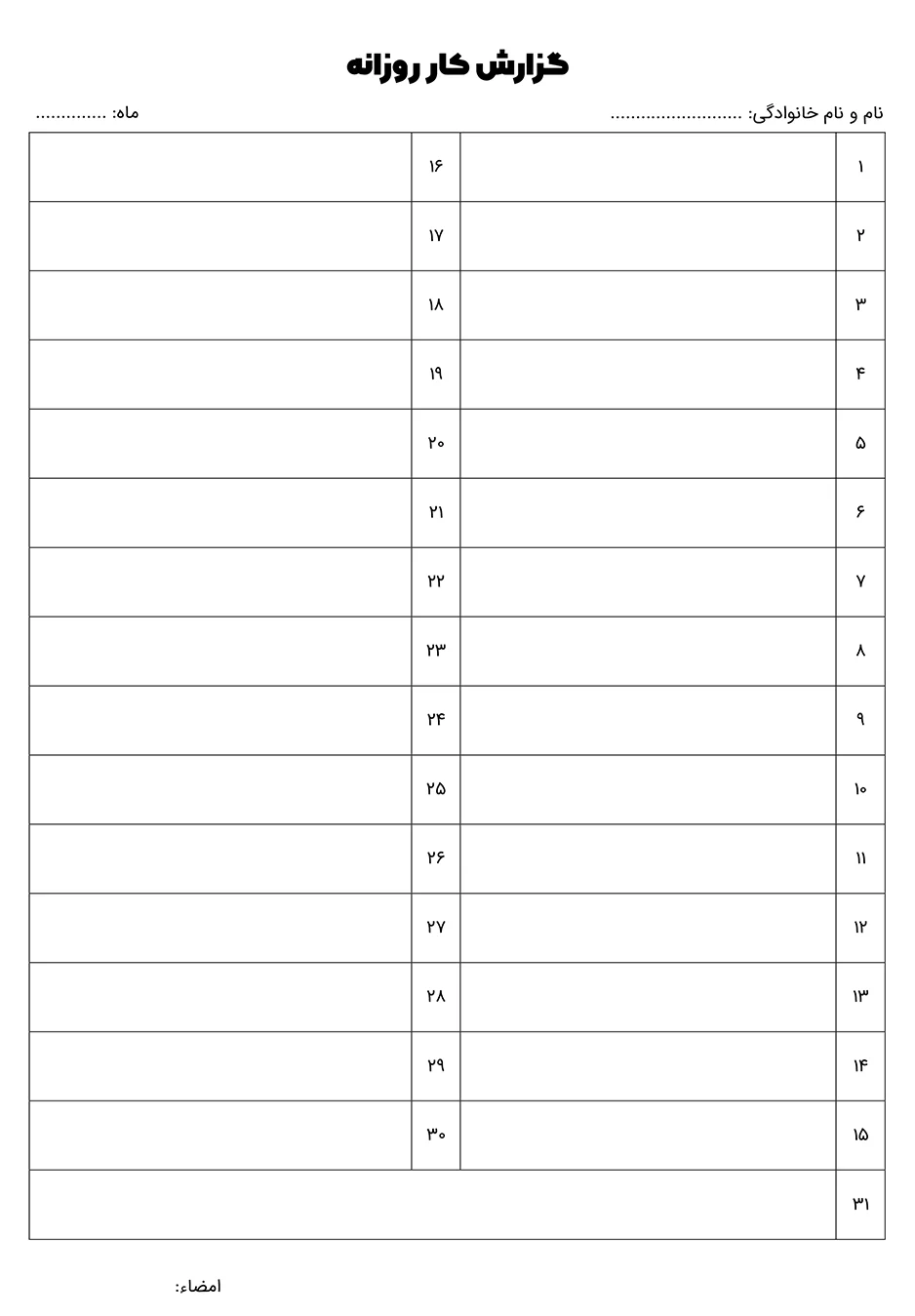 فرم گزارش کار روزانه مناسب جهت پیگیری کار های روزانه نیرو ها و کارهای شخصی